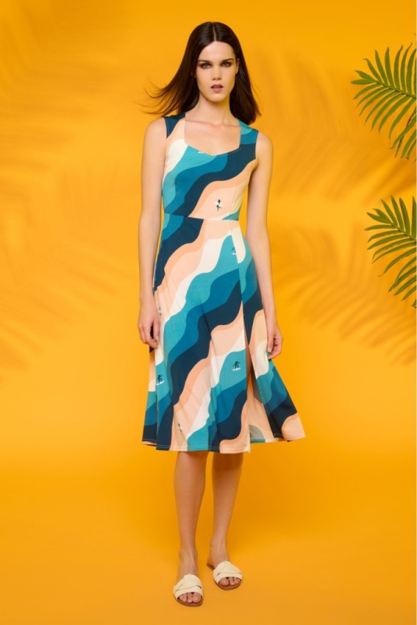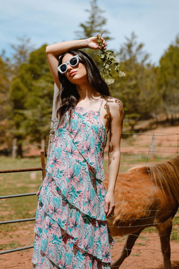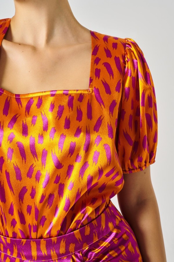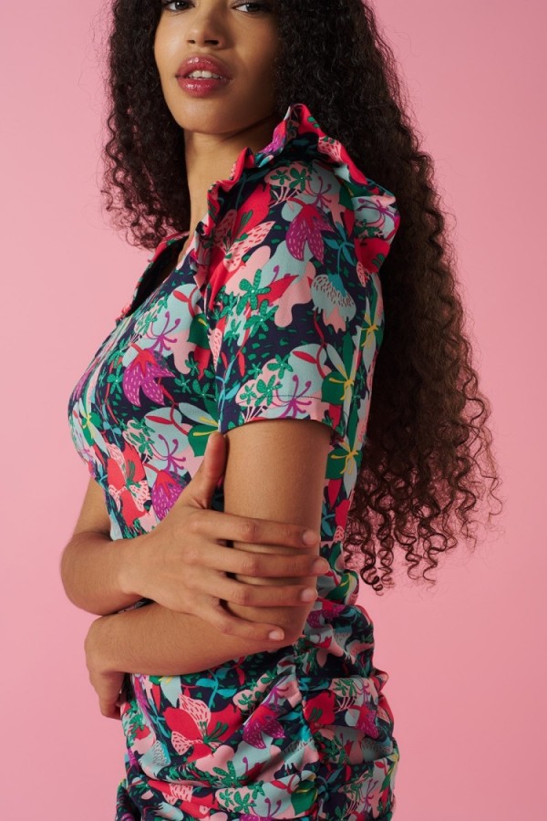 Halter neck blouse with a fitted waist by honeycomb. Lining inside.