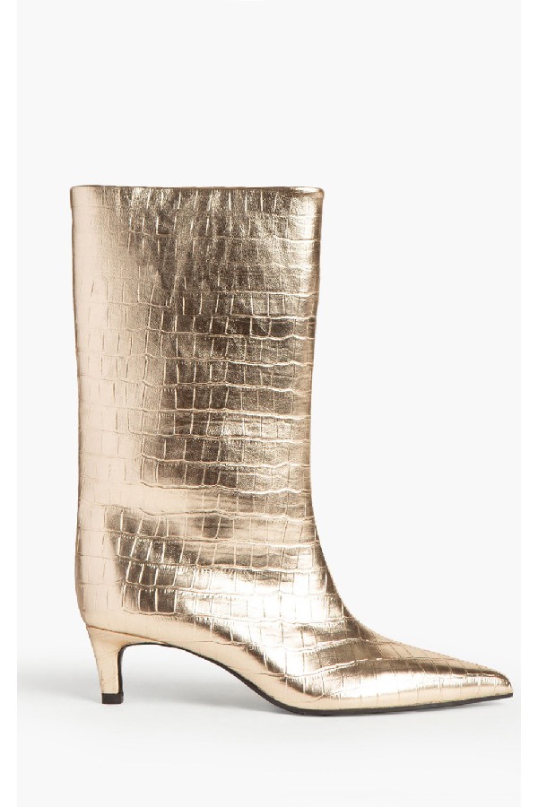 Flared design. With tip. Buckle closure at the ankle. Heel height: 8 cm.