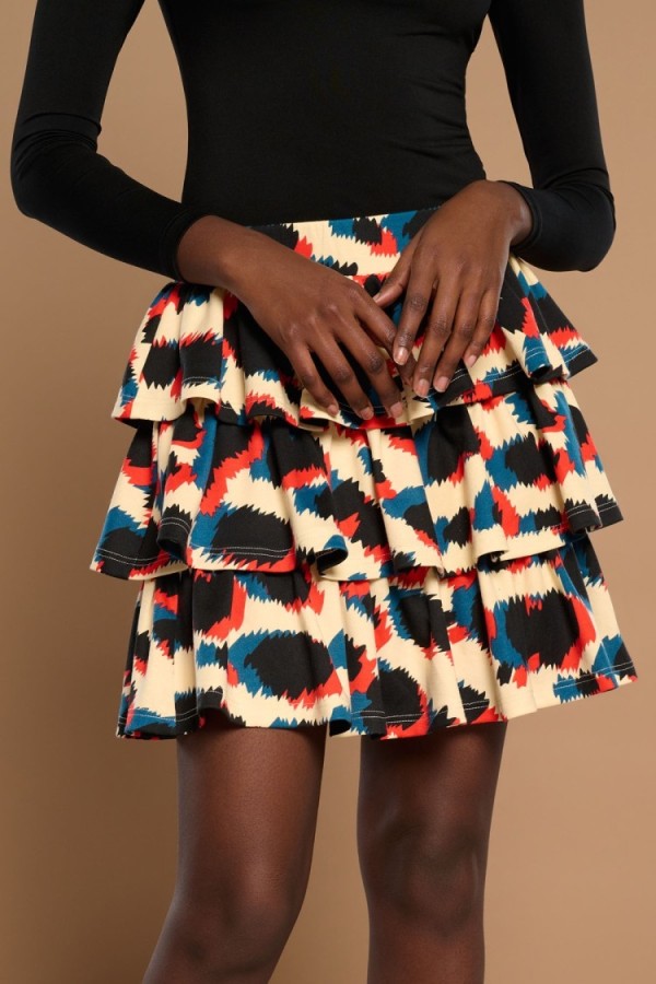 T-shirt with perkins collar and long sleeves. Stretch tulle fabric. Star print. Inner lining. Back closure with opening and button.