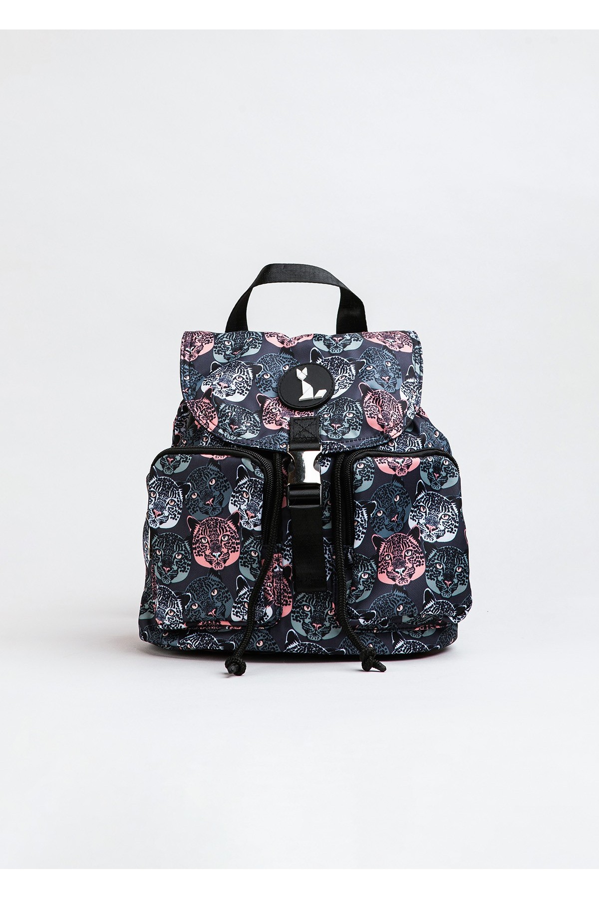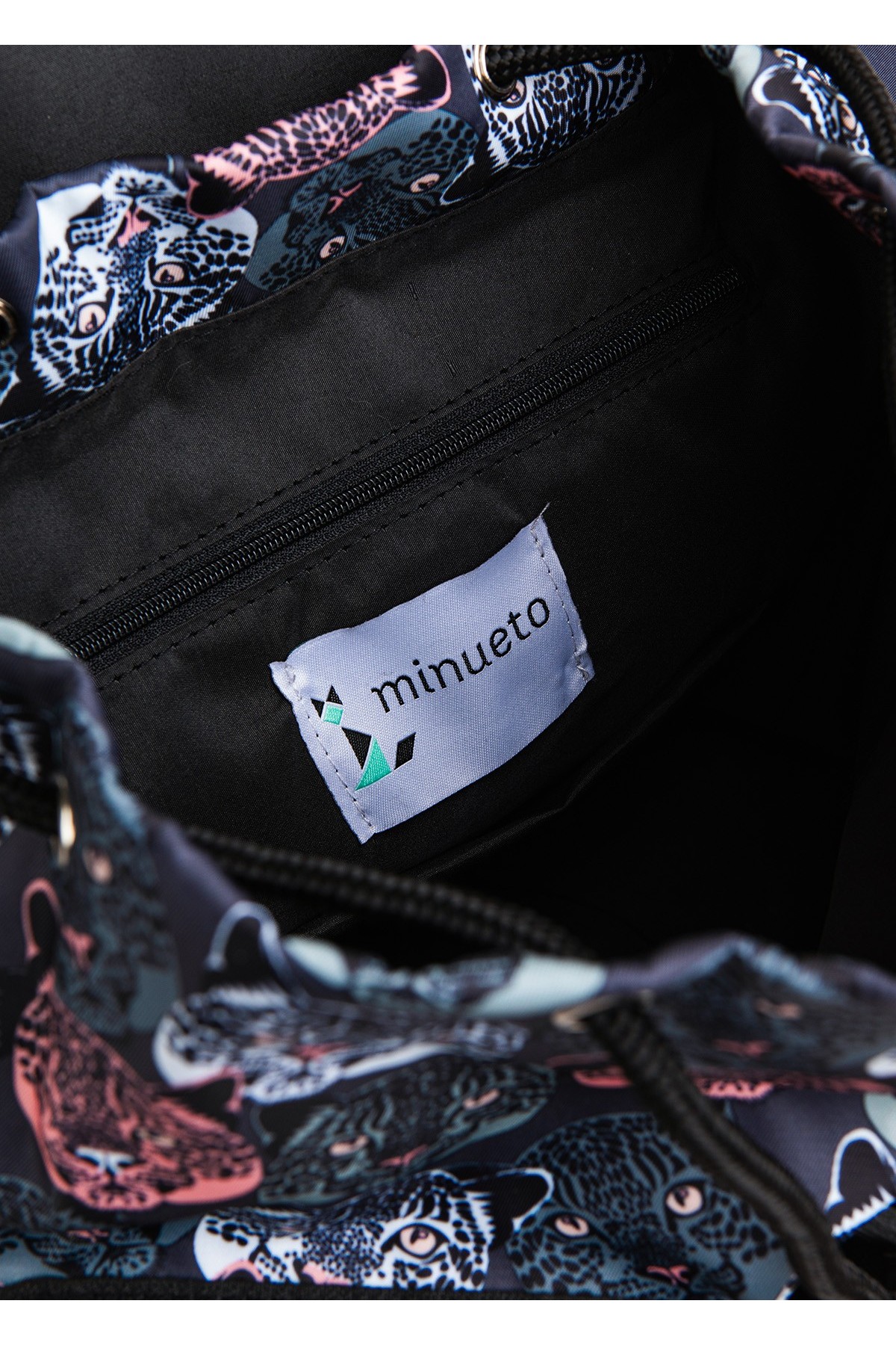 Backpack in animal print print. Nylon exterior. Adjustable closure with lid and hook. Soft structure. Two pockets with zip closure. Fabric handle. Minuet logo. Approximate measurements: 30 x 30 x 15 cm.