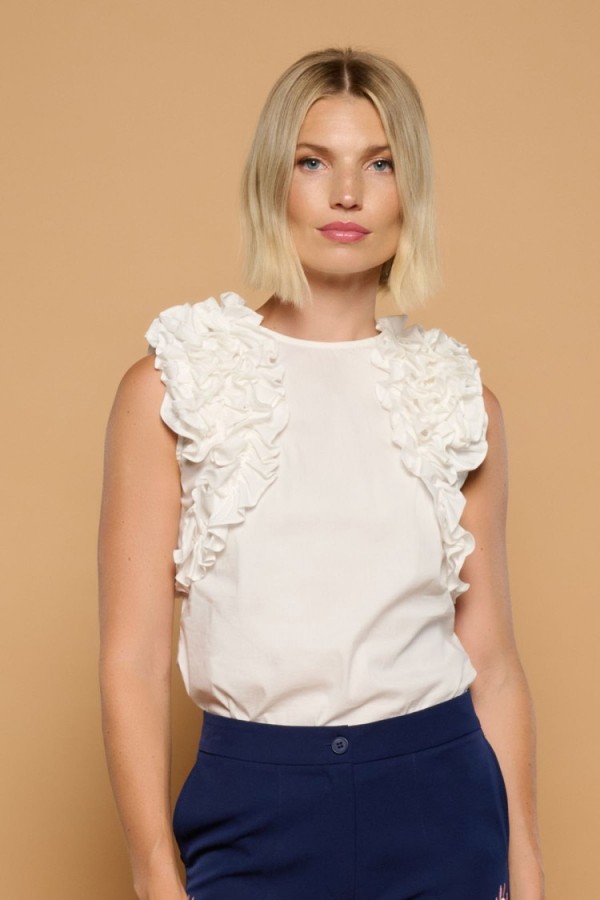 Blazer jacket with button closure. Lapel collar and long sleeves. Side pockets. Boho embroidery detail on sleeves.Model is 177 cm and wears size S.