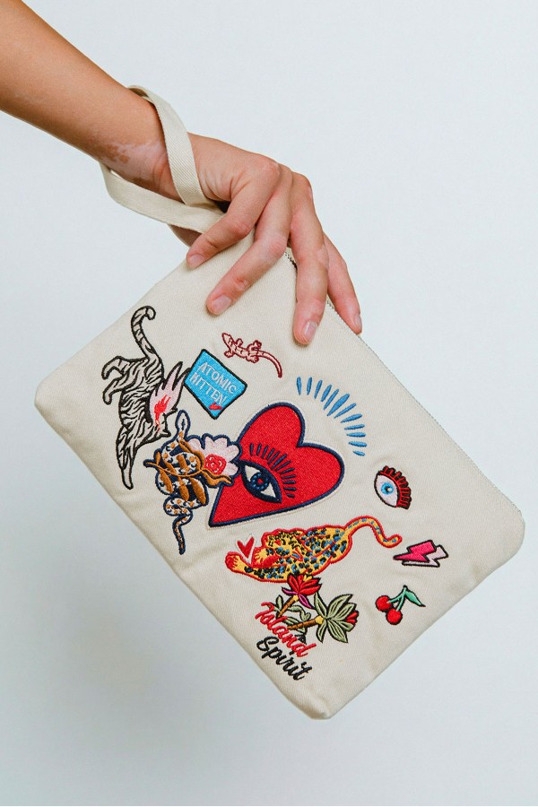 Round-neck sweatshirt with three-quarter sleeves. White mystic embroidery and heart detail on the front. Viscose blend.